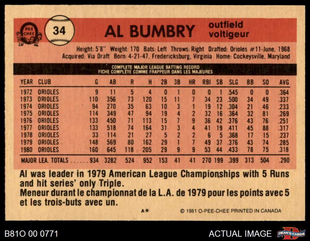 1981 O-Pee-Chee #34 Al Bumbry 8 - NM/MT