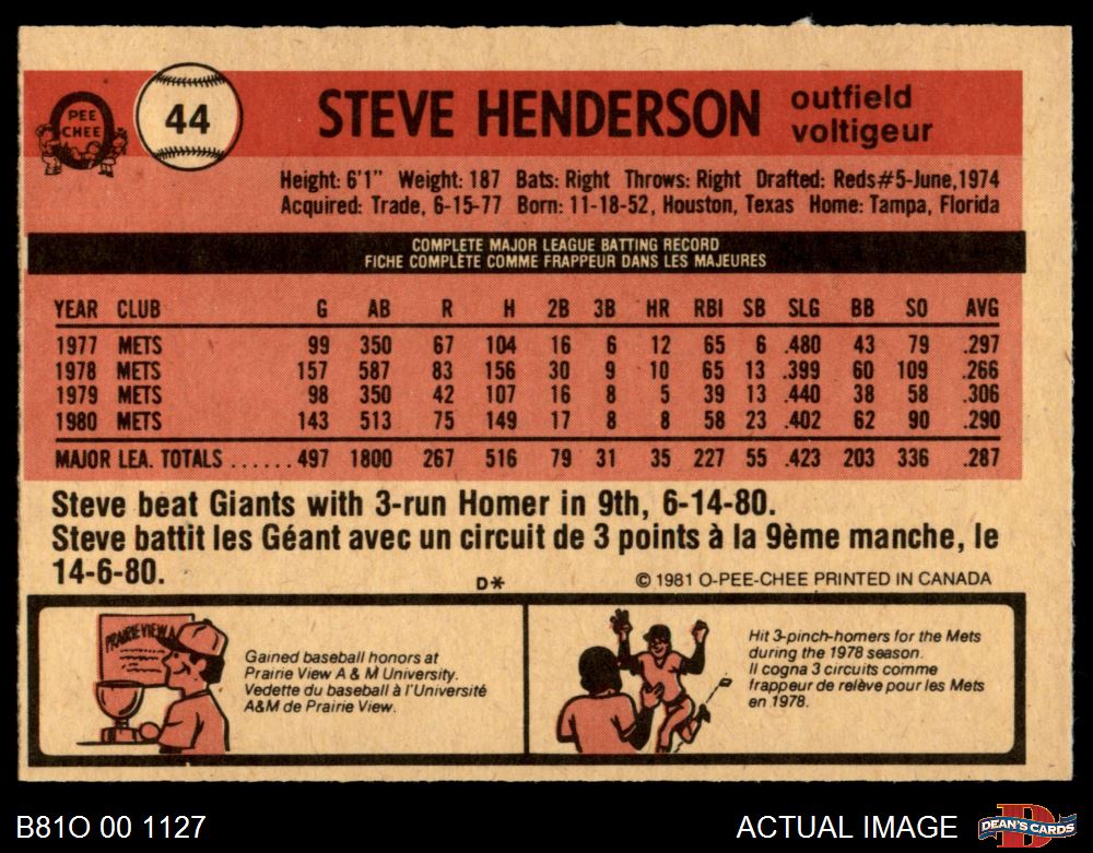1981 O-Pee-Chee #44 Steve Henderson 2 - GOOD