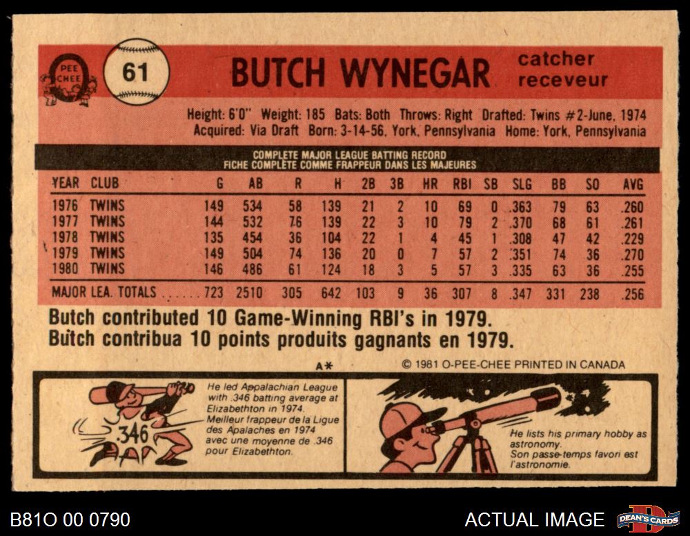 1981 O-Pee-Chee #61 Butch Wynegar 6 - EX/MT