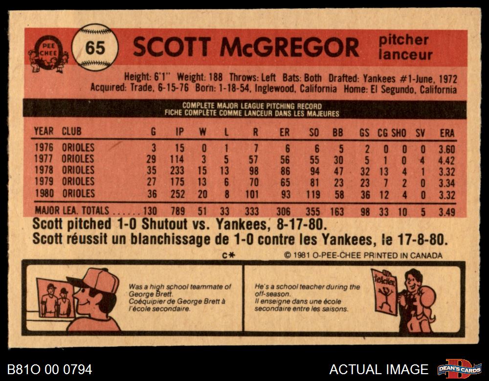 1981 O-Pee-Chee #65 Scott McGregor 6 - EX/MT