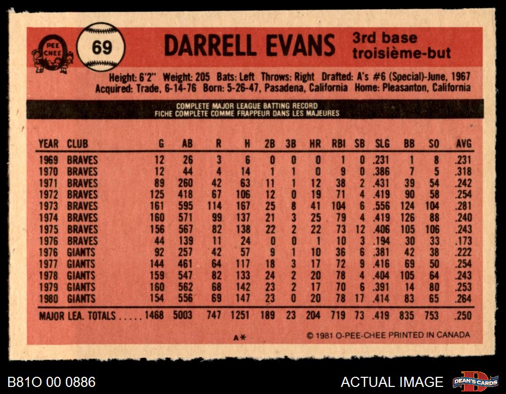1981 O-Pee-Chee #69 Darrell Evans 7 - NM