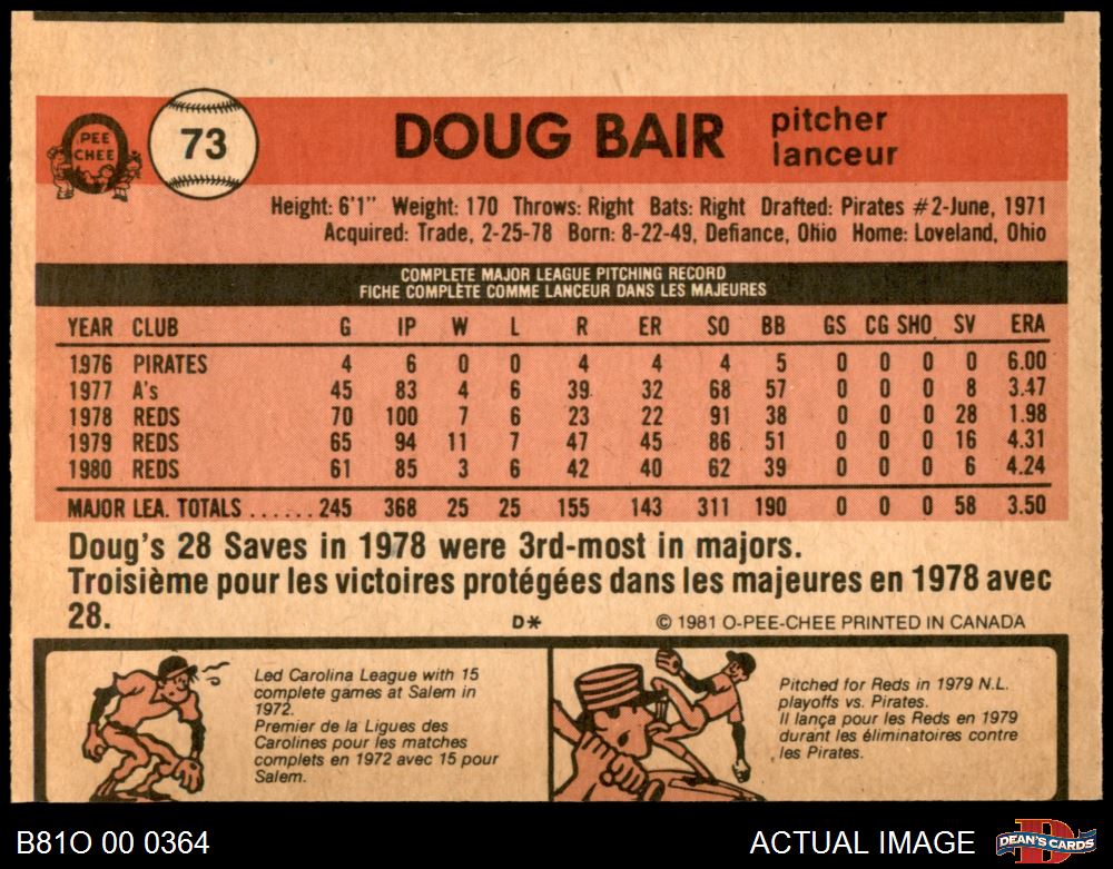 1981 O-Pee-Chee #73 Doug Bair 1.5 - FAIR