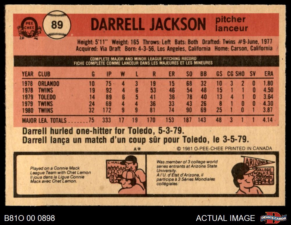 1981 O-Pee-Chee #89 Darrell Jackson 6 - EX/MT