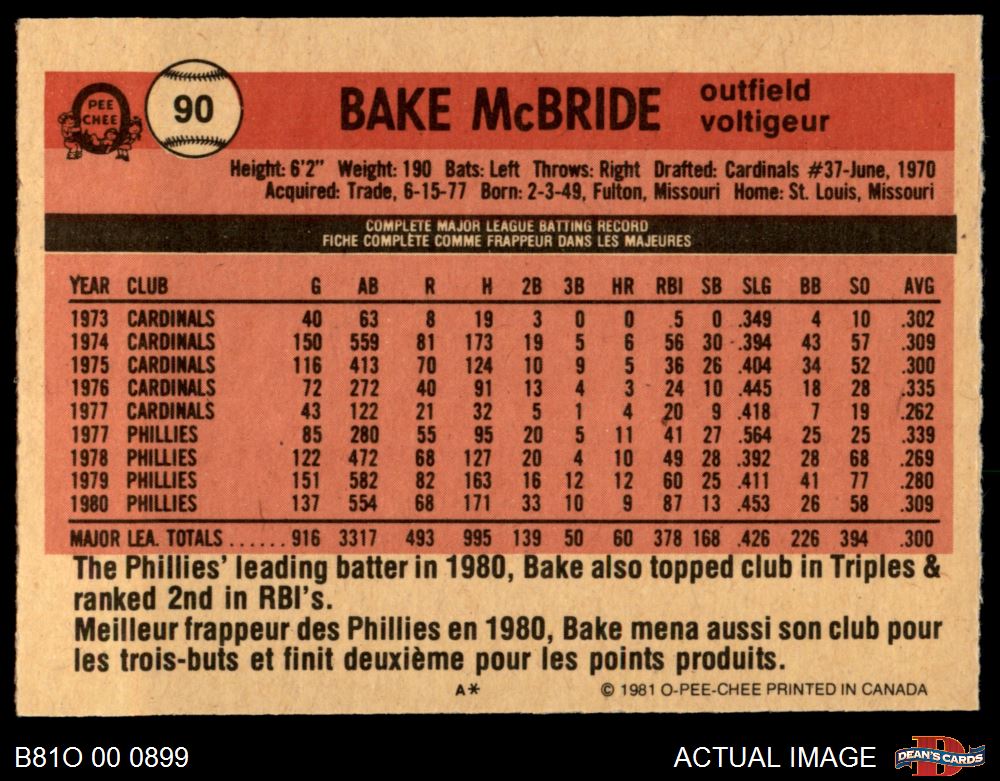 1981 O-Pee-Chee #90 Bake McBride 3 - VG