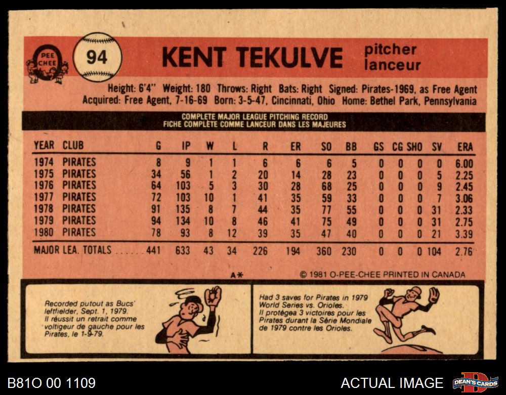 1981 O-Pee-Chee #94 Kent Tekulve 2 - GOOD