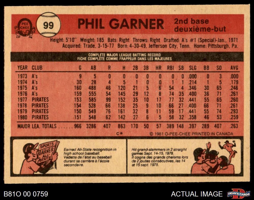 1981 O-Pee-Chee #99 Phil Garner 7 - NM