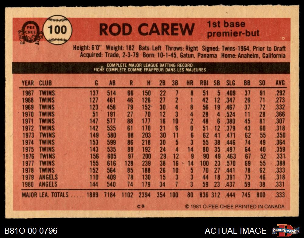 1981 O-Pee-Chee #100 - Rod Carew All-Star Game 7 - NM