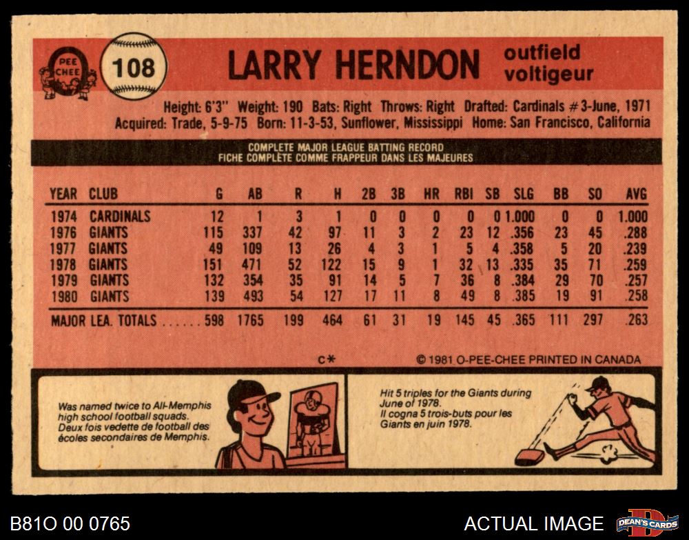 1981 O-Pee-Chee #108 Larry Herndon 7 - NM