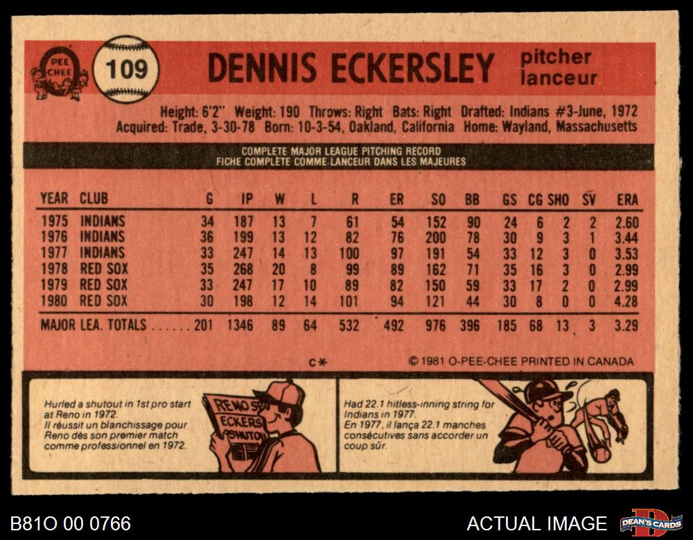 1981 O-Pee-Chee #109 Dennis Eckersley