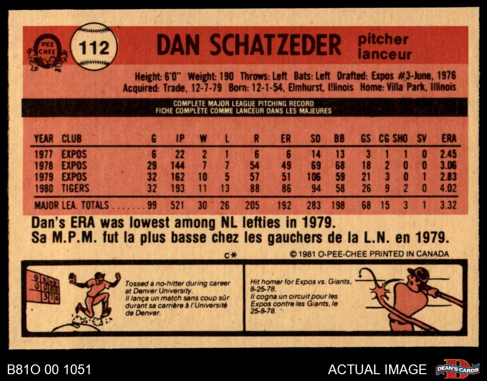 1981 O-Pee-Chee #112 Dan Schatzeder 6 - EX/MT