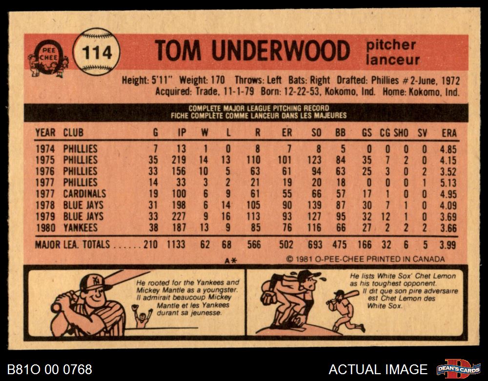 1981 O-Pee-Chee #114 Tom Underwood 6 - EX/MT