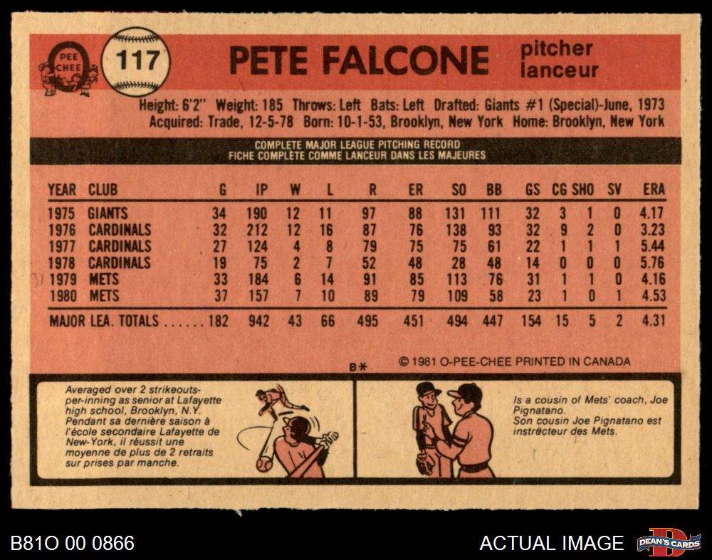 1981 O-Pee-Chee #117 Pete Falcone 6 - EX/MT