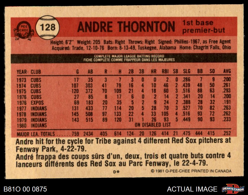 1981 O-Pee-Chee #128 Andre Thornton 5 - EX