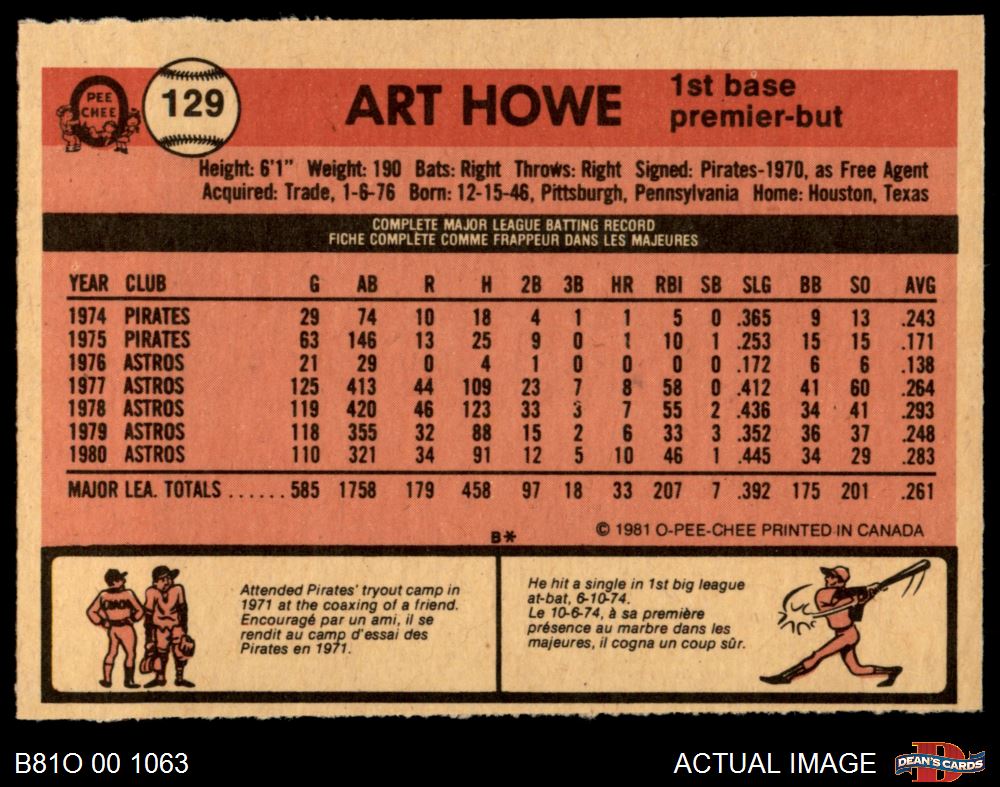 1981 O-Pee-Chee #129 Art Howe 7 - NM