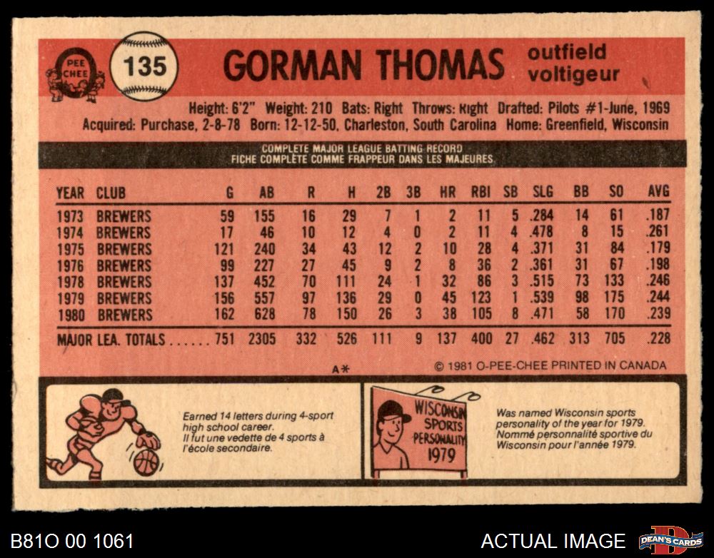 1981 O-Pee-Chee #135 Gorman Thomas 5 - EX