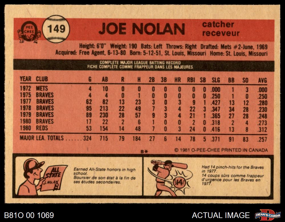 1981 O-Pee-Chee #149 Joe Nolan 7 - NM