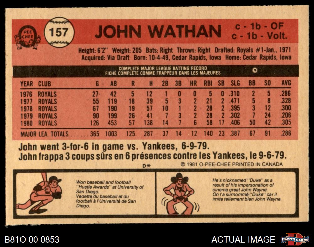 1981 O-Pee-Chee #157 John Wathan