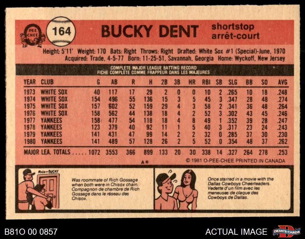 1981 O-Pee-Chee #164 - Bucky Dent All-Star Game 4 - VG/EX
