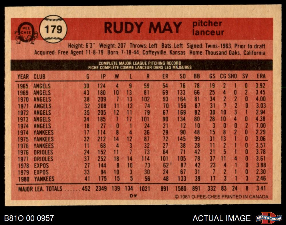 1981 O-Pee-Chee #179 Rudy May