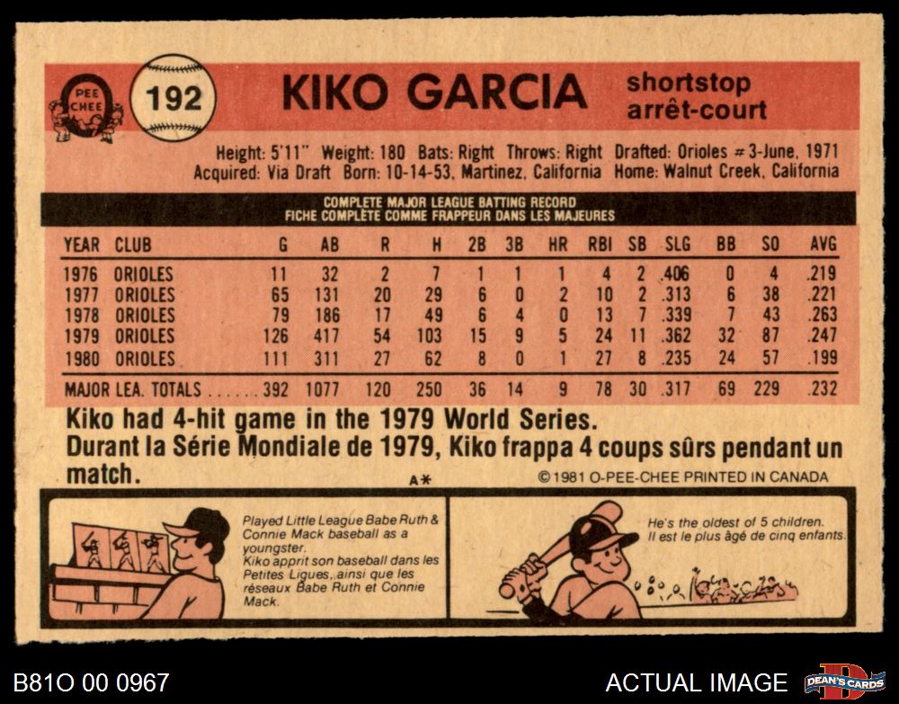 1981 O-Pee-Chee #192 Kiko Garcia 6 - EX/MT