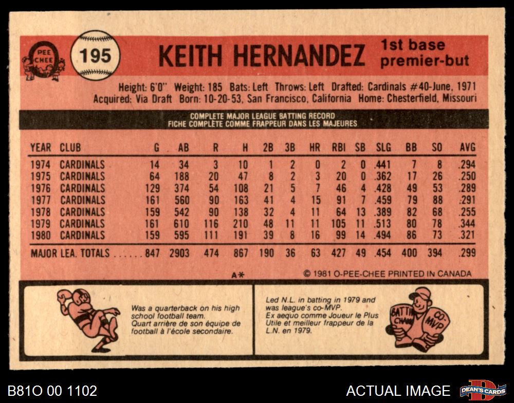 1981 O-Pee-Chee #195 Keith Hernandez 4 - VG/EX