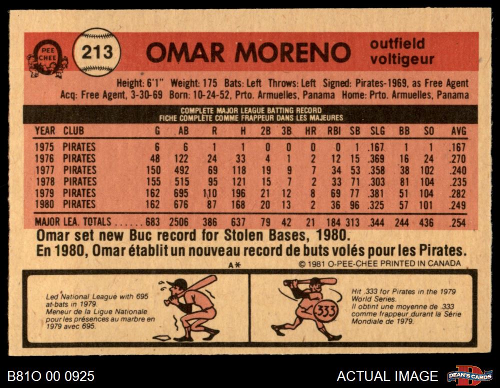1981 O-Pee-Chee #213 Omar Moreno 6 - EX/MT