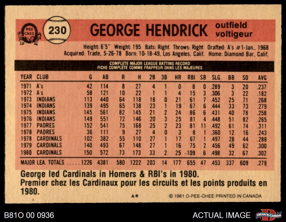 1981 O-Pee-Chee #230 George Hendrick 6 - EX/MT