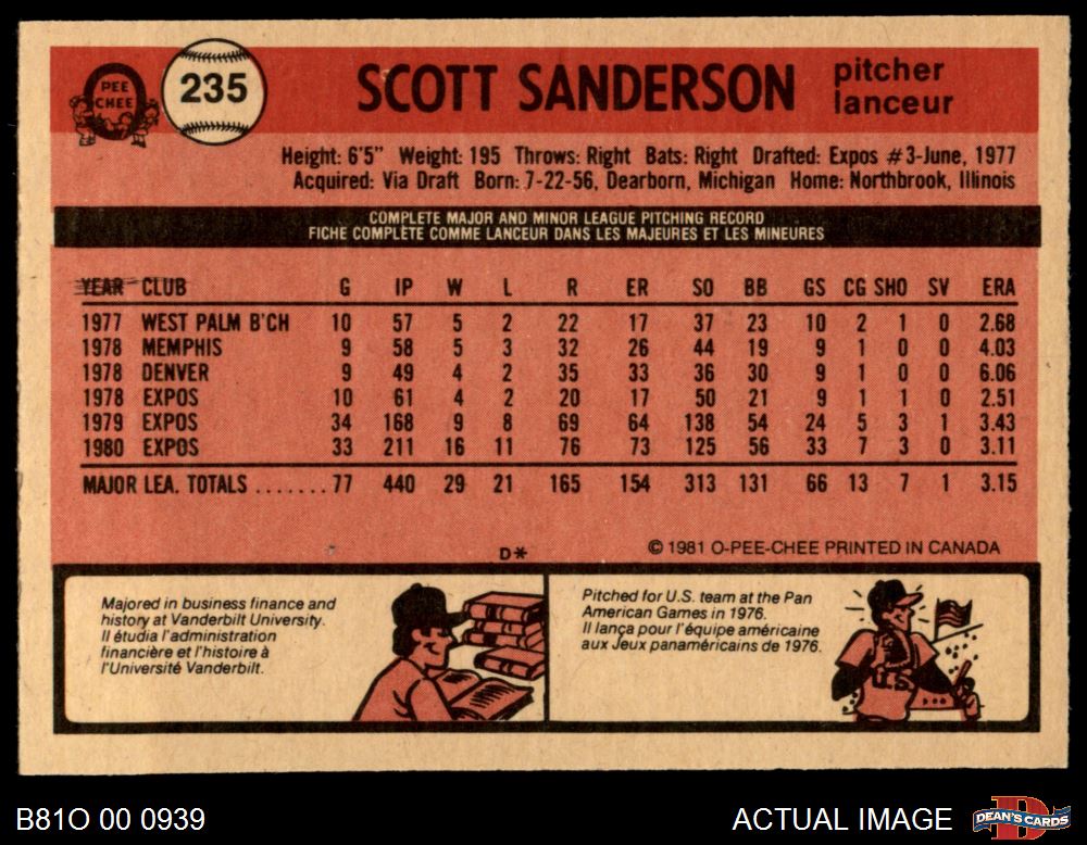 1981 O-Pee-Chee #235 Scott Sanderson 5 - EX