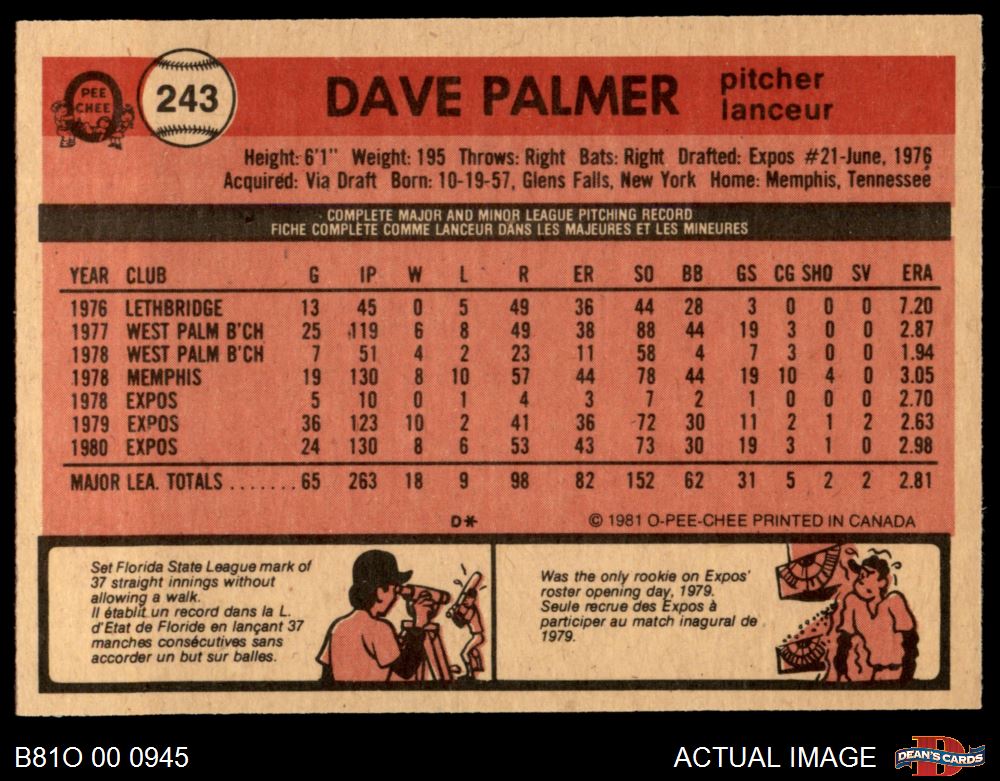 1981 O-Pee-Chee #243 David Palmer 7 - NM