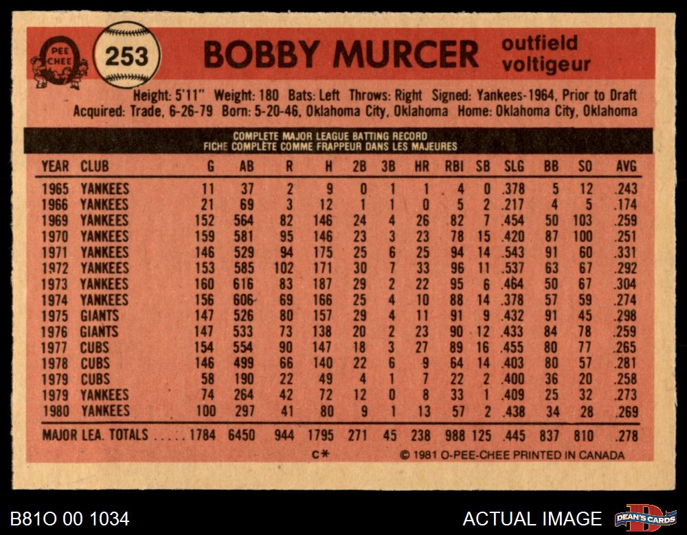 1981 O-Pee-Chee #253 Bobby Murcer 6 - EX/MT