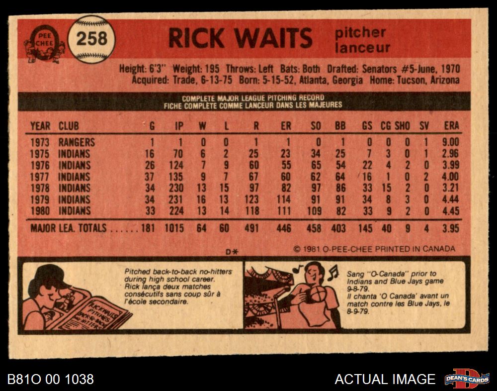 1981 O-Pee-Chee #258 Rick Waits 6 - EX/MT