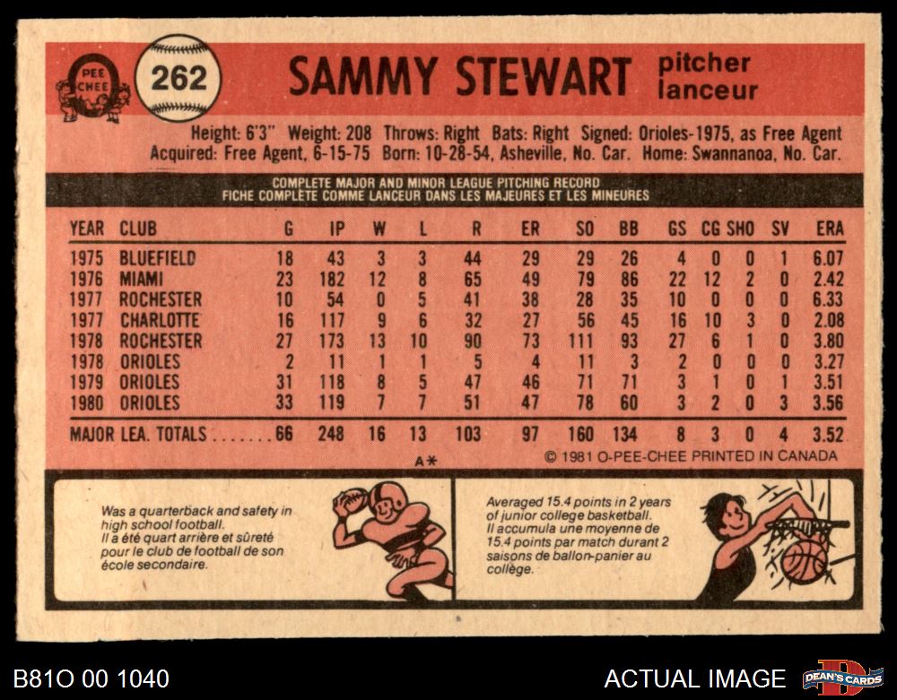 1981 O-Pee-Chee #262 Sammy Stewart 6 - EX/MT