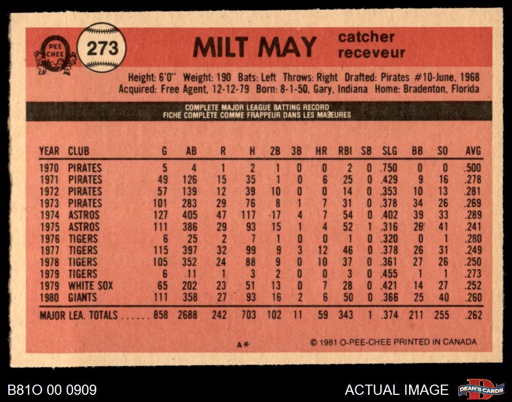 1981 O-Pee-Chee #273 Milt May