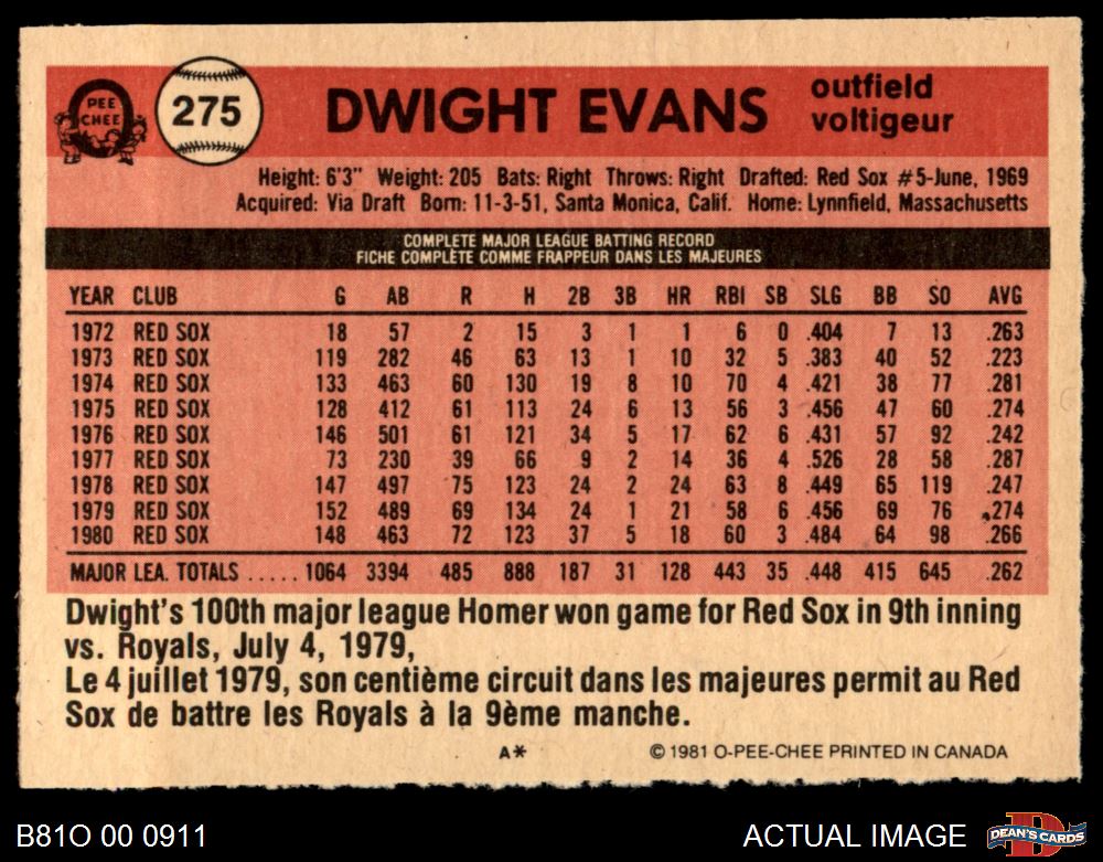 1981 O-Pee-Chee #275 Dwight Evans 6 - EX/MT