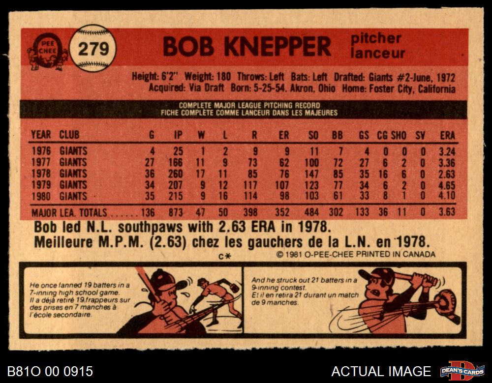 1981 O-Pee-Chee #279 Bob Knepper 7 - NM