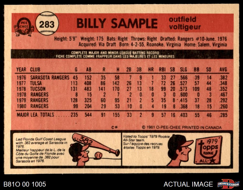 1981 O-Pee-Chee #283 Billy Sample 5 - EX
