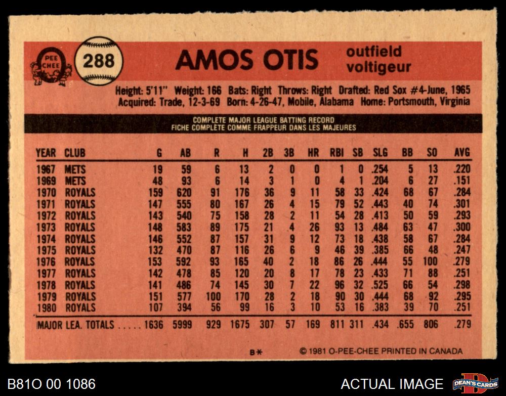 1981 O-Pee-Chee #288 Amos Otis 4 - VG/EX