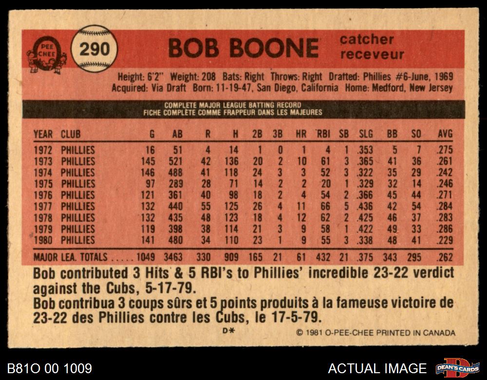 1981 O-Pee-Chee #290 Bob Boone 6.5 - EX/MT+