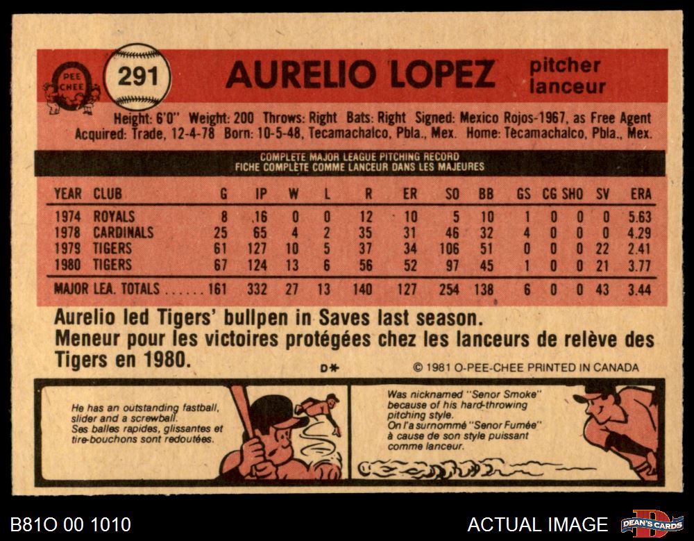 1981 O-Pee-Chee #291 Aurelio Lopez