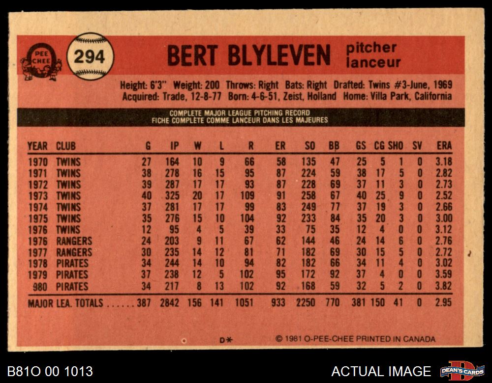 1981 O-Pee-Chee #294 Bert Blyleven 3 - VG