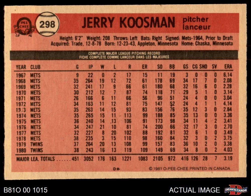 1981 O-Pee-Chee #298 Jerry Koosman