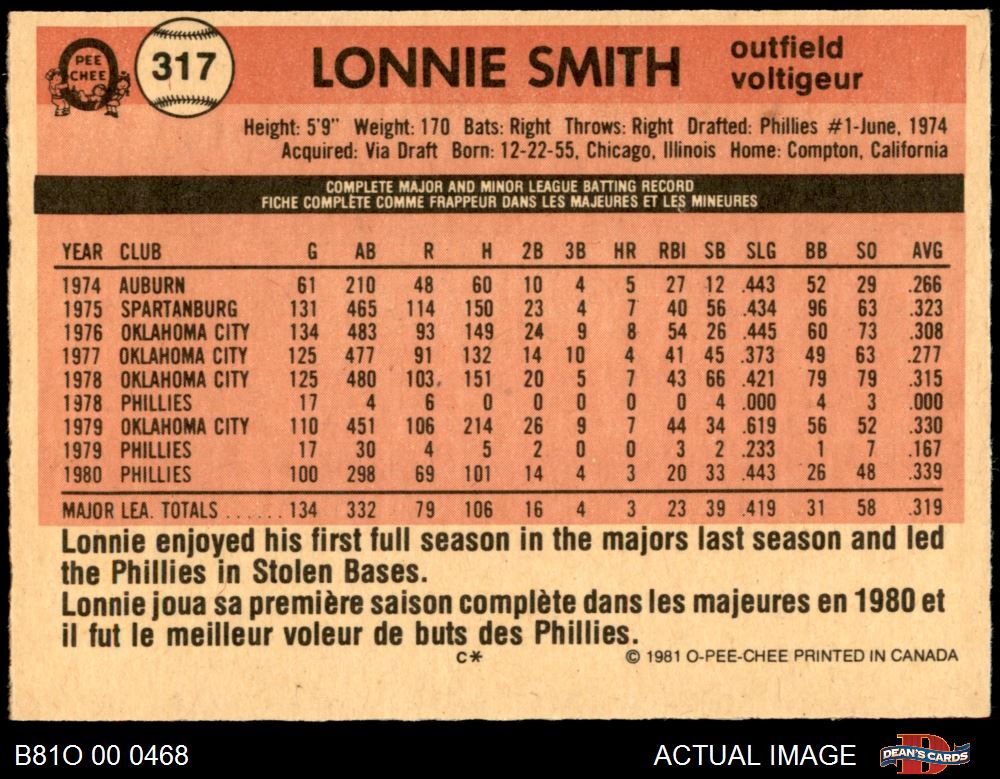1981 O-Pee-Chee #317 Lonnie Smith 4 - VG/EX