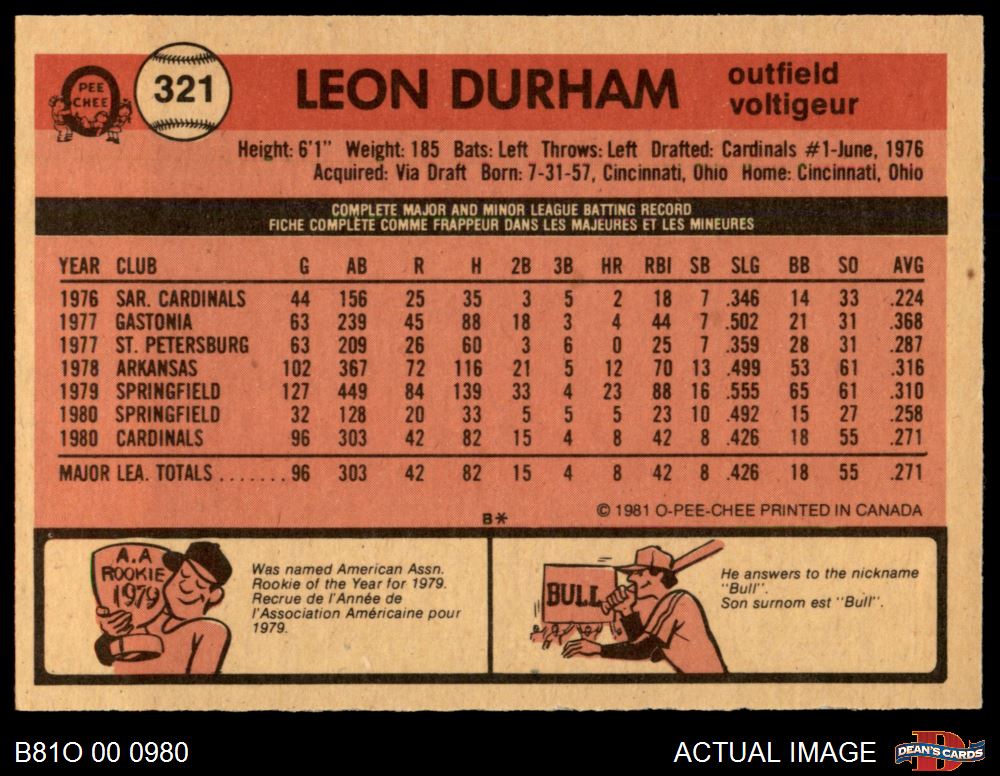 1981 O-Pee-Chee #321 Leon Durham 8 - NM/MT