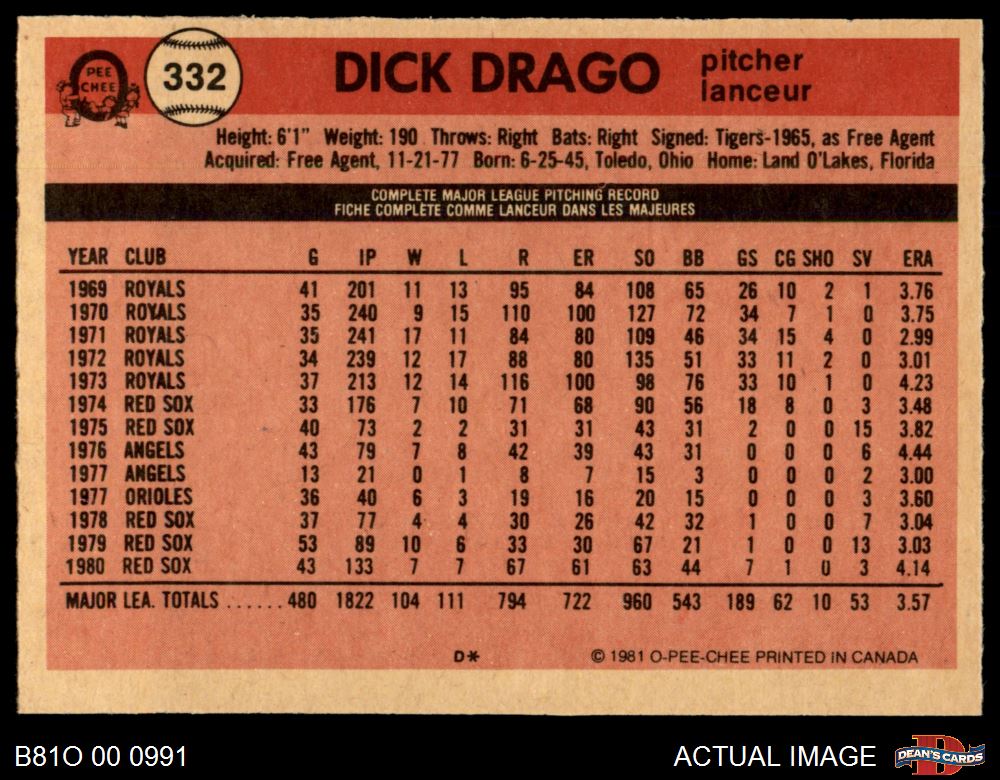 1981 O-Pee-Chee #332 Dick Drago 7 - NM