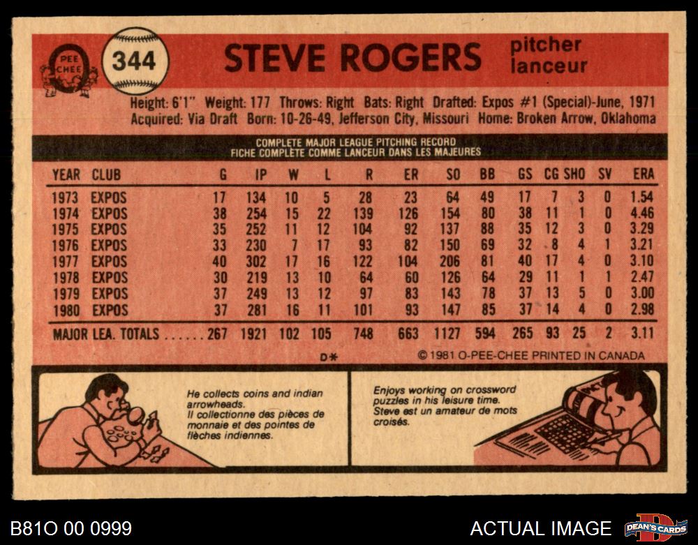 1981 O-Pee-Chee #344 Steve Rogers 7 - NM