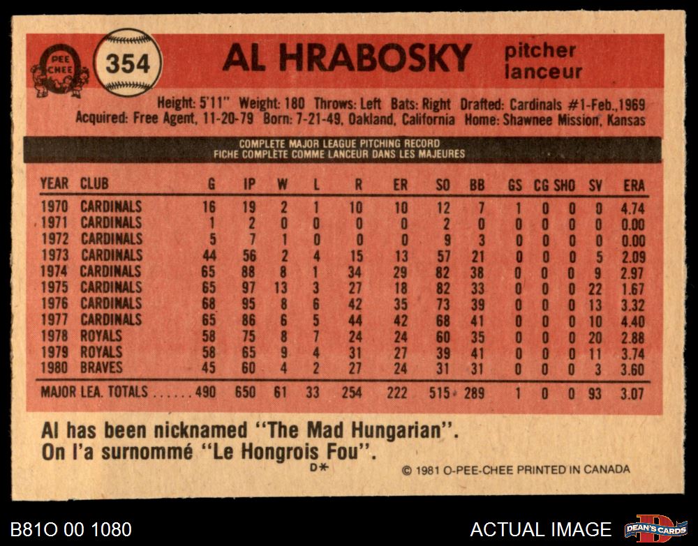 1981 O-Pee-Chee #354 Al Hrabosky 6.5 - EX/MT+