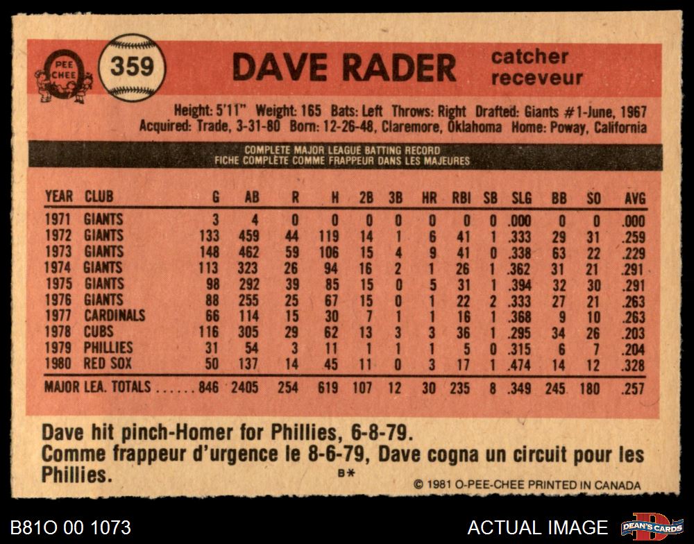 1981 O-Pee-Chee #359 Dave Rader 5.5 - EX+