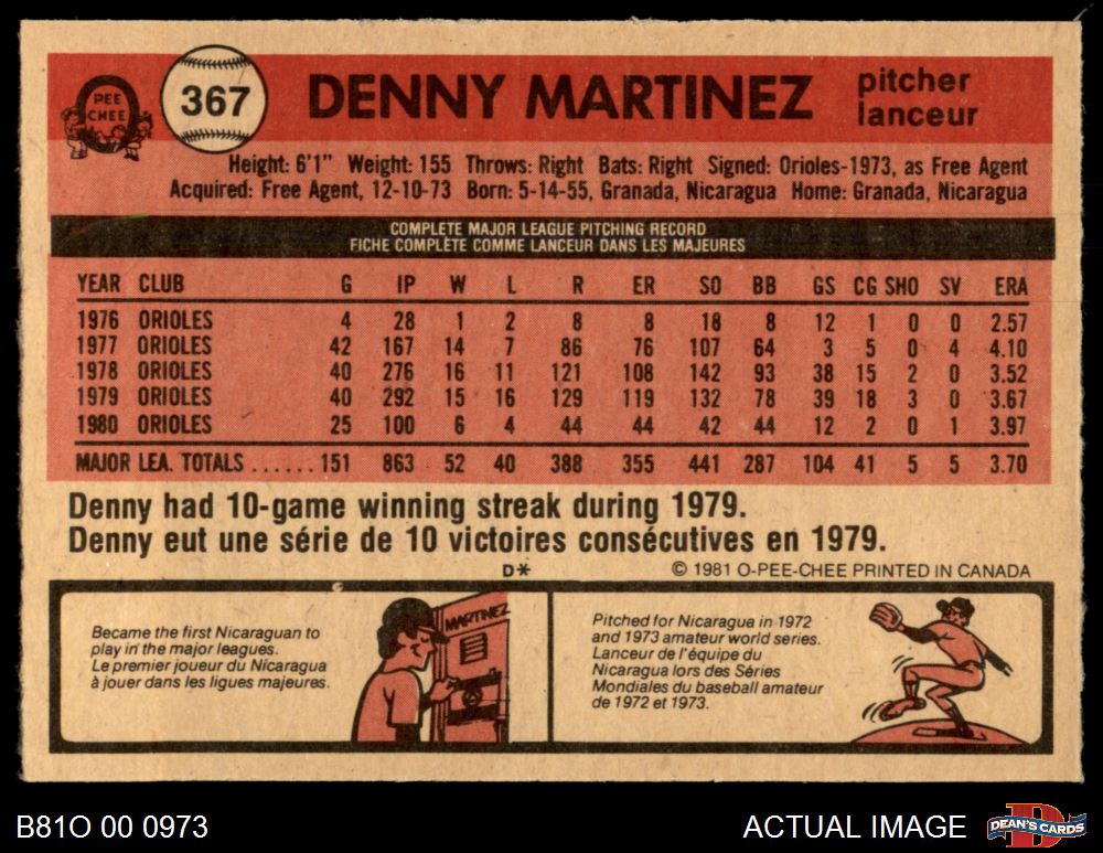 1981 O-Pee-Chee #367 Dennis Martinez 6 - EX/MT