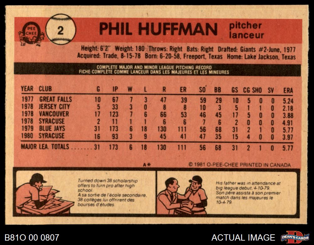 1981 O-Pee-Chee #2 Phil Huffman 6 - EX/MT