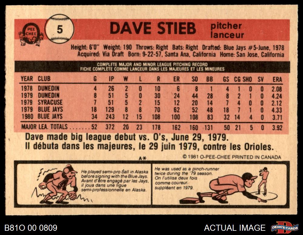 1981 O-Pee-Chee #5 Dave Stieb 6 - EX/MT